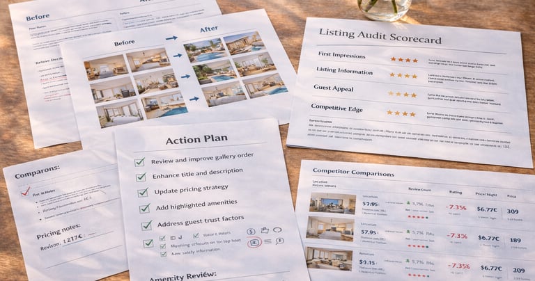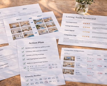 Designed for hosts who already have an Airbnb or Booking.com listing and want practical feedback on how to improve it. This service helps you identify missed opportunities and areas that could be presented more clearly, so the listing feels stronger, more appealing, and more guest-ready.